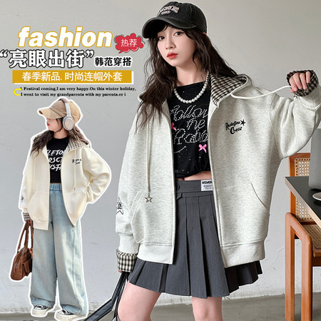 z*2下载视频“2502新款拼格子帽衫外套”